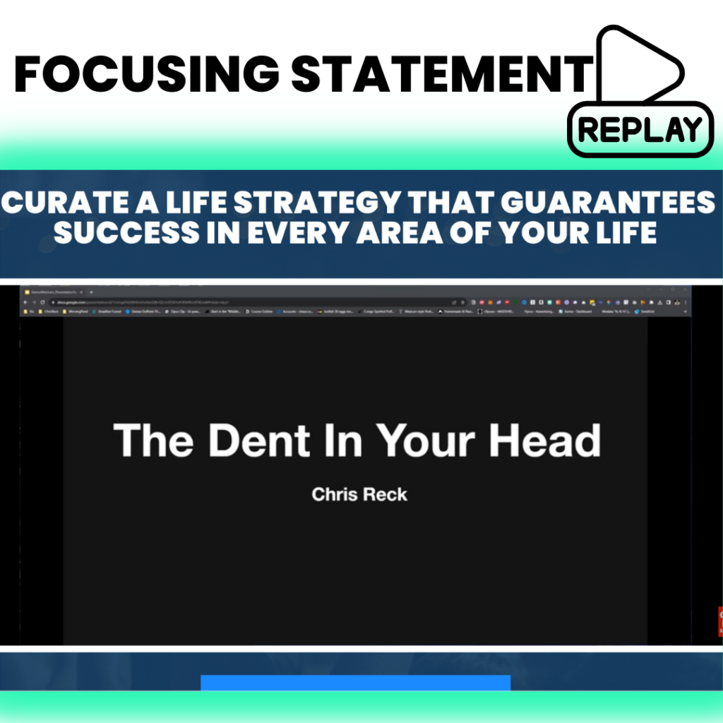 Discover the power of a Focusing Statementโa goal on steroids. Join my totally free webinar, the Focusing Statement webinar, where you’ll learn how to create your own Focusing Statement. This incredible tool takes your big goals and breaks them down into specific, actionable steps. Don’t worry if it sounds overwhelming; I’ve designed a free template to guide you through each piece of the Focusing Statement, making it as simple as filling in the blanks. Get started on this webinar to supercharge your journey towards making your DENT on the universe.